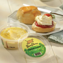 Every day our small dairy takes wonderfully fresh milk from the cows grazing nearby fields to produce our mouth-watering ice creams, truly lovely, golden, clotted cream and thick, tasty yoghurts.